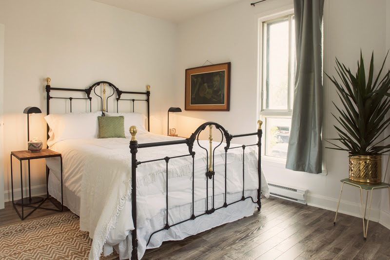 Un appartement vintage au point où on a l’impression d’entrer dans une autre époque: c’était le but recherché des designers de la compagnie montréalaise Fülhaus. Tout leur processus de création part de ce qui est ancien et récupéré avec l’idée de recréer une ambiance autour des objets. La théorie des 3 R (réduire, réutiliser, recycler), fait partie de leur manifeste. On était fait pour s’entendre ! Lorsque j’ai vu pour la première fois les photos de cet appartement sur Airbnb, j’ai poursuivi mes recherches pour savoir qui l’avait aménagé car cela ne pouvait être que des personnes ayant un grand sens de la décoration et du style. Car du style, cet appartement en a à revendre !! Celui de la période 1900 -1920 mélangé à un style « british bohème » qui a été inspiré de pub Bishop & Bagg dans le quartier Mile End à Montréal.