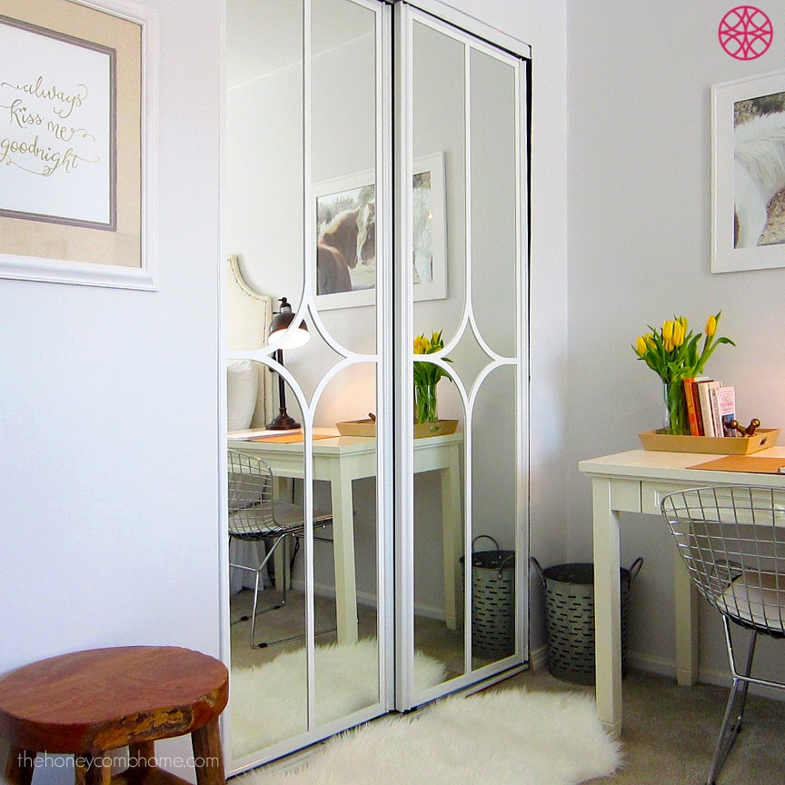Les questions que vous me posez parfois en message sur Facebook (suivez-moi) ou dans les commentaires du blog me donnent des idées de billets. Bien que j’ai déjà écrit un billet sur relooker des portes coulissantes miroir avec du tissu, il y a tellement d’autres façons pour ne pas se débarrasser de vos portes coulissantes miroirs, si vous ne les aimez plus. Certains modèles anciens ont encore leur look années 80 avec un encadrement doré. Comment leur redonner une nouvelle vie sans tout changer ? Voici 3 idées.