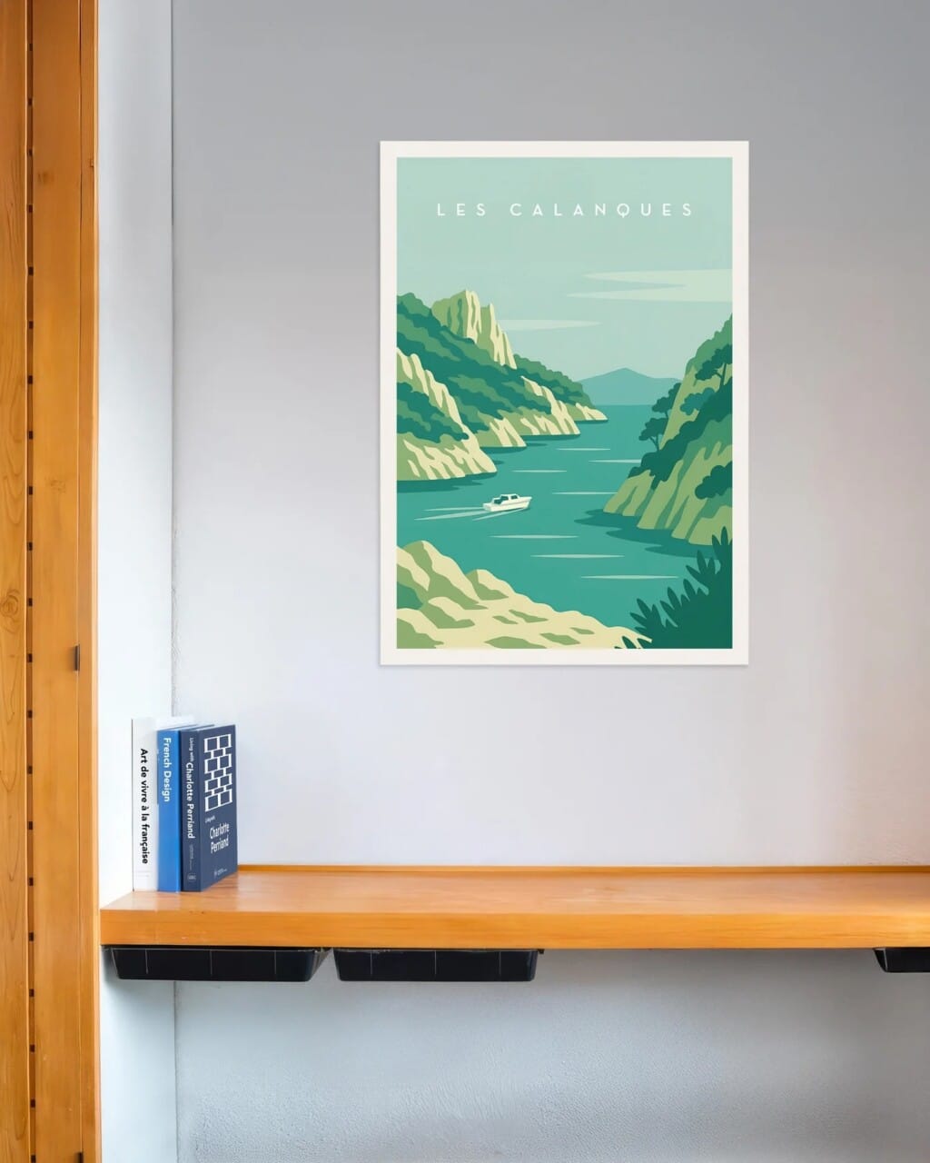 - L’histoire derrière l’image : choisissez une œuvre qui résonne avec votre parcours. Un poster de ville ? Choisissez celle de votre premier voyage ou de votre enfance. Une photo de nature ? Optez pour le type de paysage (forêt, mer, montagne) où vous vous sentez le plus libre. Évidemment, en tant que marseillaise, je choisirais les calanques.