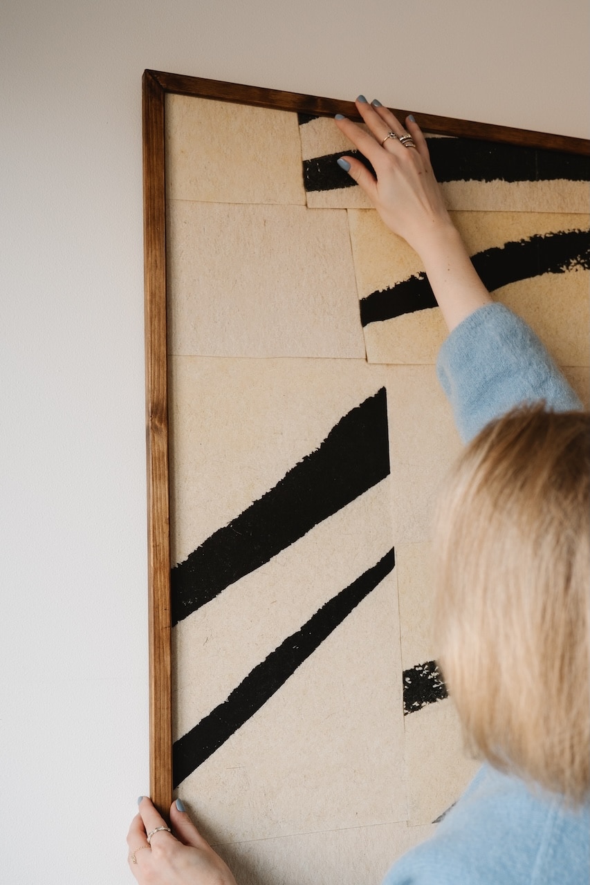 Posez les crochets et fixations adaptés au poids de votre œuvre et au type de mur (plâtre, béton, cloison sèche). Si vous avez un doute sur les fixations, consultez un quincaillier : mieux vaut prendre le bon ancrage dès le départ.