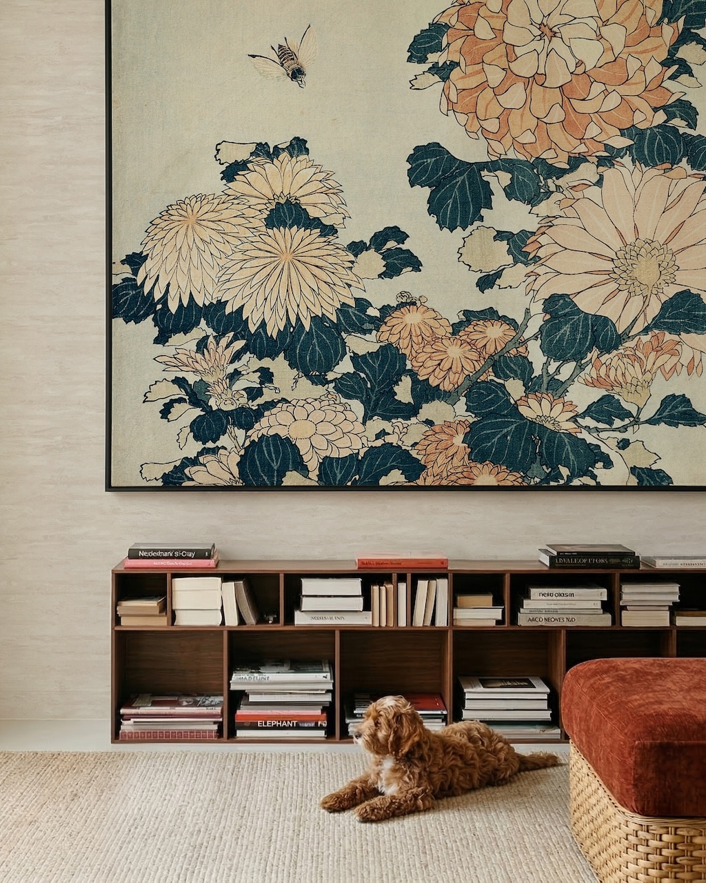 Et pour maximiser l’impact visuel, n’hésitez pas à associer votre œuvre encadrée avec du papier peint posé directement au mur en fond. Le contraste entre les deux crée une profondeur très intéressante, à condition que les motifs dialoguent bien entre eux.